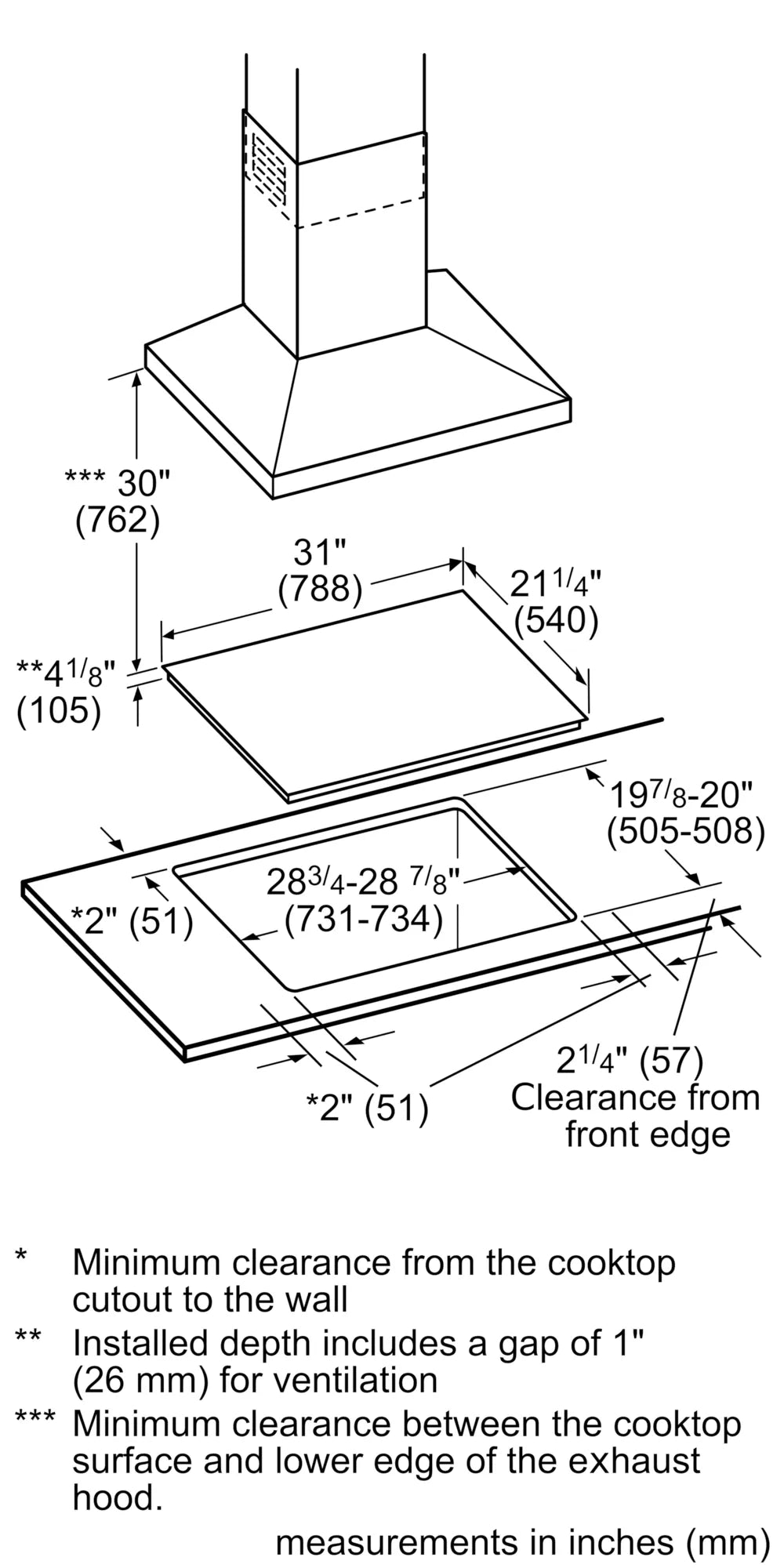 | Required Cutout Size (HxWxD) (in) | 3 3/4'' x 28 7/8'' x 20'' |