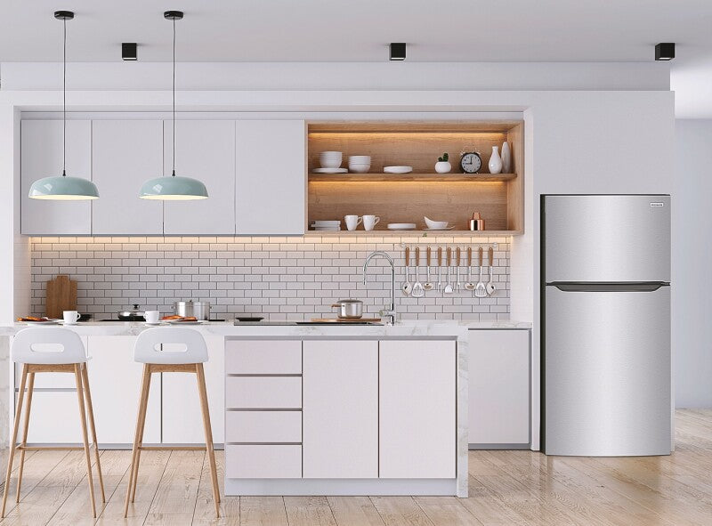 Elevate your kitchen with the Frigidaire 18.3 Cu. Ft. Top Freezer Refrigerator. This top freezer refrigerator boasts a sleek stainless steel exterior that exudes luxury and modernity. The auto-close doors make sure that your food stays fresh and cool, even when you're in a rush. Inside, the Flexible Interior Storage System allows you to customize the layout of your fridge to fit your specific needs. Additionally, the humidity-controlled crisper drawers with roller support keep your fruits and vegetables fresh for longer. The magic doesn't stop there, because this fridge is packed with features that will make your life easier. The EvenTemp™ Cooling System ensures that the temperature inside the fridge is consistent, ensuring that your food stays fresh. If you're a fan of ice, the Frigidaire 18.3 Cu. Ft. Top Freezer Refrigerator is ice maker ready, so you can enjoy ice at any time. With its elegant stainless steel exterior, flexible interior storage system, and impressive cooling and