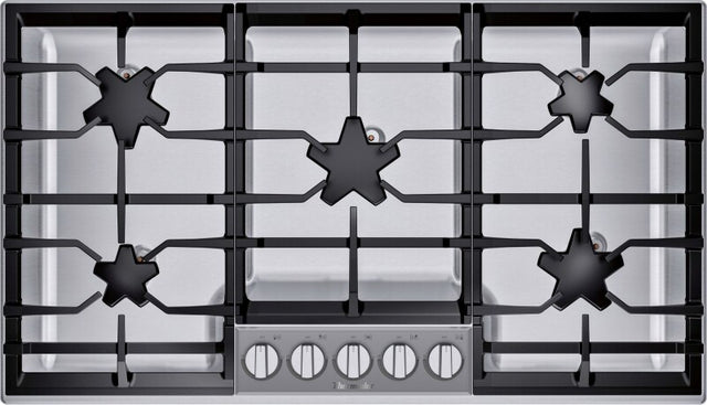 36-inch 5 burner gas cooktop provides ample space for ease when cooking.