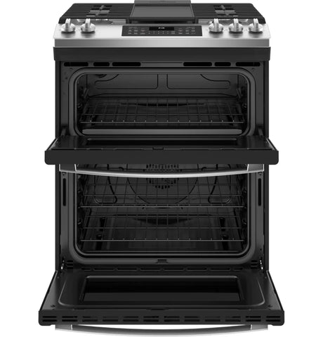 GE 30" Slide-In Front Control Gas Double Oven Range - Stainless Steel (JGSS86SPSS)