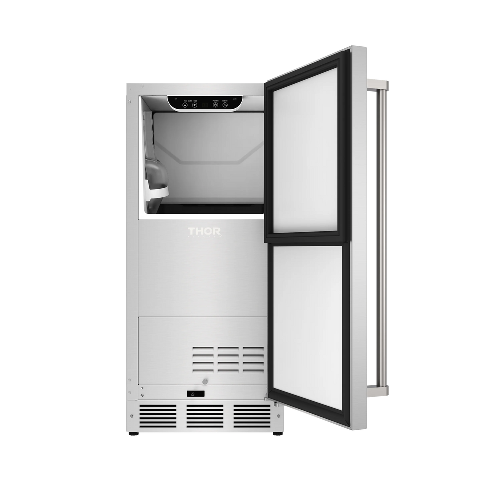 THOR Kitchen offers the power and performance of a premium professional appliance at a practical price. An entertainer?s dream, the 15 inch built in Ice Maker, both indoor and outdoor, is the perfect complement to any home refrigeration suite. Keep plenty of fresh ice on hand with an icemaker that produces 50 pounds of ice a day and stores up to 25 pounds of ice in a large capacity bin. Featuring a built-in pump, the Ice Maker is easy to install in any kitchen or residential wet bar. #IgniteYourCulinaryCreativity