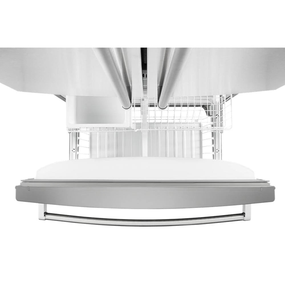 The KitchenAid 20 cu. ft. 36-Inch Width Counter-Depth French Door Refrigerator can add a touch of splendor to your kitchen. French door refrigerators have long been a popular choice for their spacious interiors, modern design, and convenient layout - and this particular model takes all of those features to the next level. With a generous 20 cu. ft. capacity, this fridge has plenty of room to store all of your favorite foods and drinks. The sleek stainless-steel exterior adds a touch of sophistication to any kitchen, and the streamlined look creates a seamless and cohesive aesthetic. Equally impressive is the interior. The metal wine rack is a stylish and practical touch, perfect for storing your favorite bottles. The FreshChill™ Temperature-Controlled Full-Width Pantry is a game-changer, providing a dedicated space for storing and preserving your produce. Plus, there's an automatic ice maker to ensure you'll never run out of ice for your drinks. In addition to these standout feature