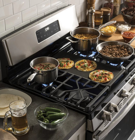 Sale price $578.00 Regular price $829.00Unit price /Unavailable GE 30" Slide-In Front Control Gas Range - Stainless Steel (JGSS66SELSS)