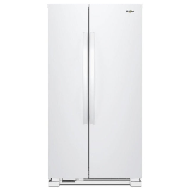 Whirlpool 36" Side by Side Refrigerator with 25 Cu. Ft. Capacity and Frameless Glass Shelves in White