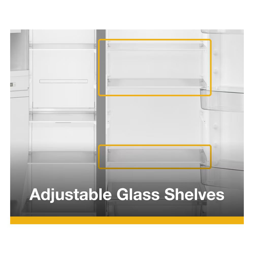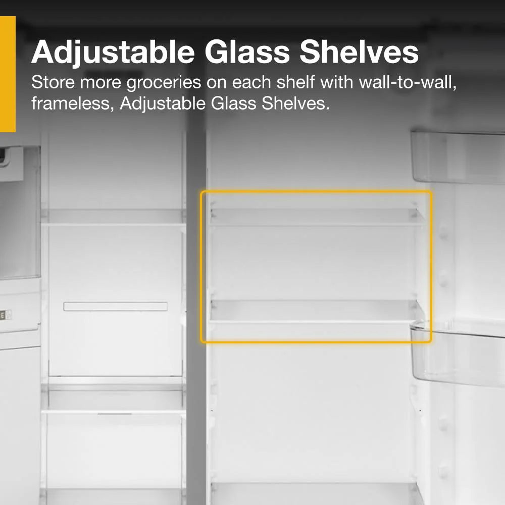 Store more groceries on each shelf with wall-to-wall, frameless Adjustable Glass Shelves for countless options.