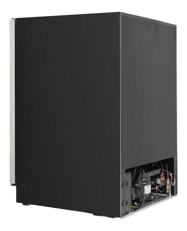 Seamless stainless steel door frame, dual pane tempered glass and black exterior housing provide a sleek, modern and professional design
