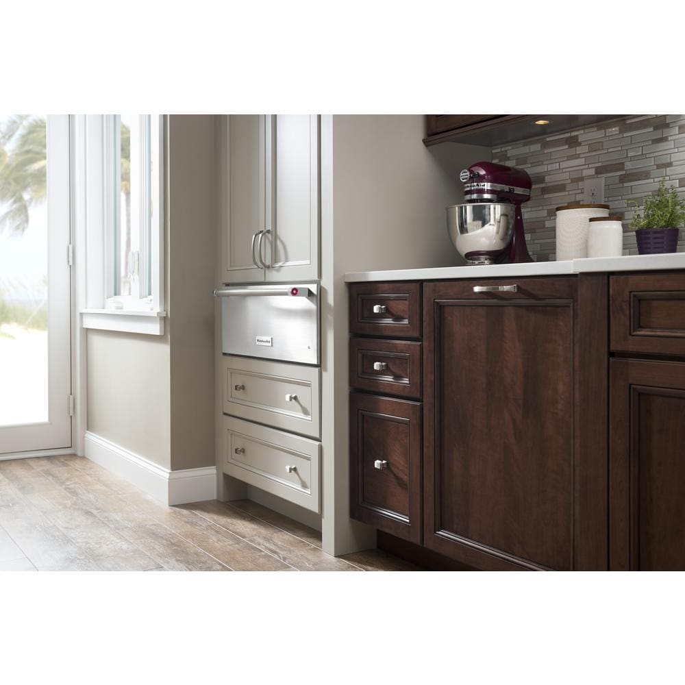Keep your food warm and delicious with the KitchenAid 30'' Slow Cook Warming Drawer. The stainless steel product comes with a power indicator light and 1.5 cu. ft. capacity. With two-position racks, humidity slide control, and a removable drawer, this warming drawer is perfect for all your needs. The KitchenAid 30'' Slow Cook Warming Drawer is designed with various features that cater to your cooking and baking needs. The Slow Cook Function is perfect for cooking your food to perfection. You can cook your meat slowly and steadily, allowing the flavors to develop and the meat to become more tender. With its Sensor Temperature Control, you don't have to worry about temperature fluctuations. The technology ensures that the temperature stays consistent throughout the entire cooking process, making sure that your food is cooked to perfection. The Custom-Control Technology is another innovative feature that makes the KitchenAid 30'' Slow Cook Warming Drawer stand out from the rest. You can