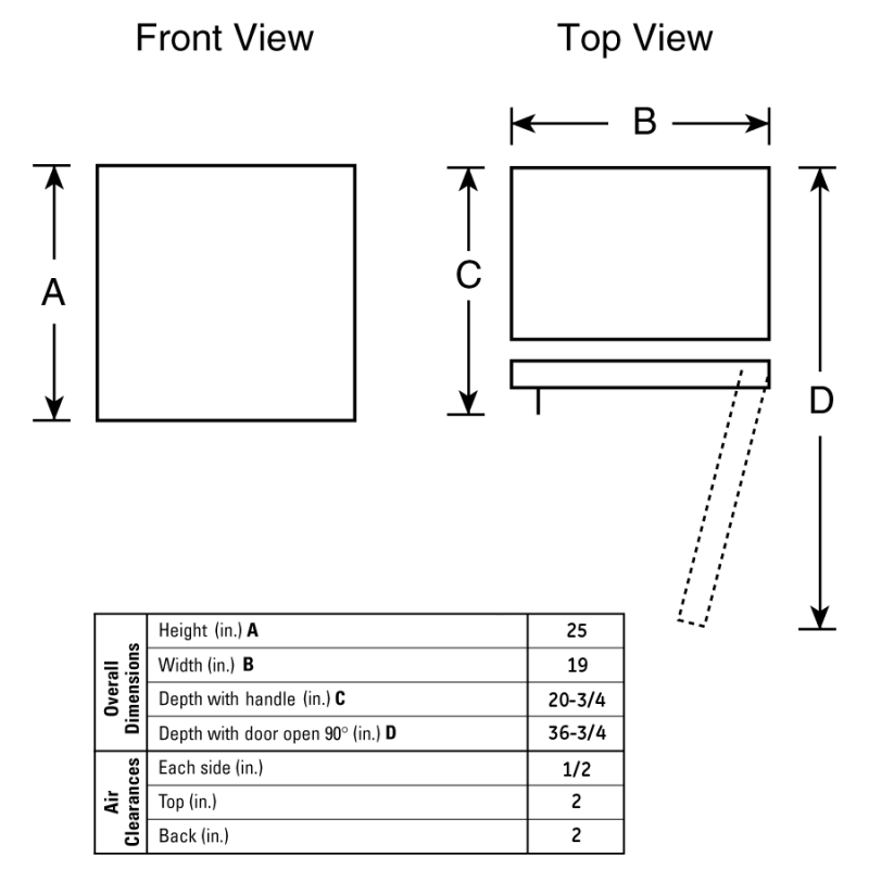 | Side Air Clearances | 0.5 in |
