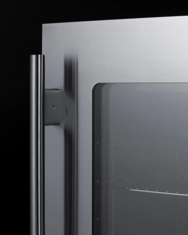Glass is framed by with a flush one-piece stainless steel trim for an elevated look